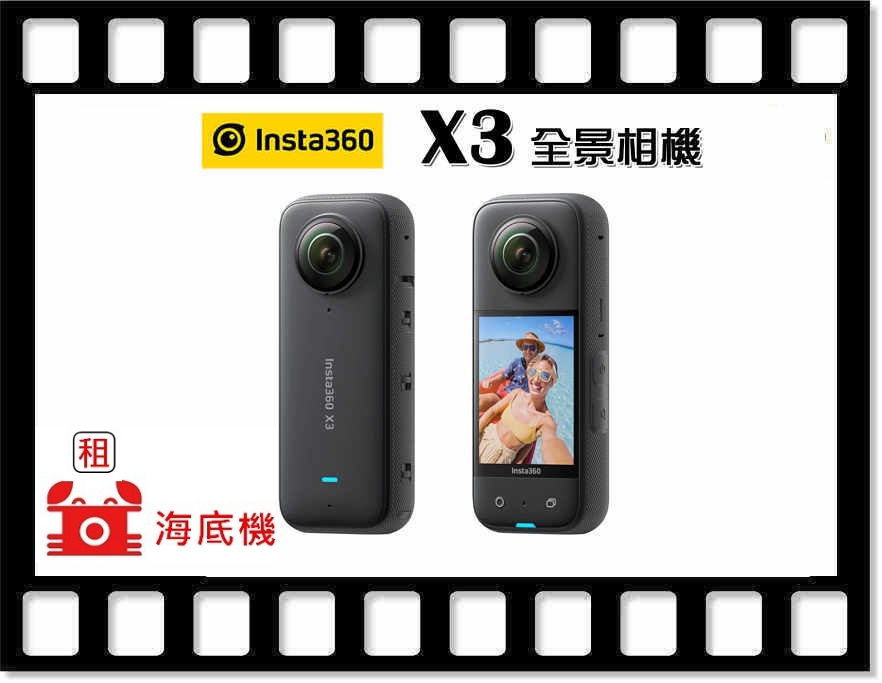 出租商品及報價 Insta360 X 出租 首頁 > 商品 > Insta360 X 出租 > Insta360 X3 全景相機出租 Insta360 X3 全景相機出租 系統報價已包含取還2天不計費,請於出國前1天取件,回程資料儲存好,隔天再歸還 1.取還日期及地點 取件日 歸還日 數量 取件方式 宅配收送 店取店還 取還地點 台北特約門市(台北 大同區-民權西路) 高雄特約門市(高雄 新興區-八德一路) 行程 請選擇 陸地、雪地旅遊、無下水 玩水、浮潛、海底漫步、體驗潛水15米以內 有執照潛水、超過15米到40米內深潛 2.加租配件 原廠電池 (+20 / 天) 256G記憶卡SanDisk (+20 / 天) 迷你腳架HRR (+10 / 天) 機車夾 (+10 / 天) 萬向蟹夾 (+20 / 天) USB讀卡器 (+10 / 次) 防潑水袋 (+10 / 次) 行動電源 (+10 / 天) 3.獨家安心保障(說明頁面) 安心保障 (海底機負擔50%責任損失) +100元/次 4.租金試算 預約天數 2 Insta360 X3 全景相機出租 2天 * 1組 = 700 總計 700 加入購物車 Insta360 X3 出租 出租標準配件:相機主機/原廠電池2顆/記憶卡128G (U3)/鏡頭保護鏡/相機保護套/旅充/座充/傳輸線/120cm隱形自拍棒/說明書/收納包 參考資料:說明書、錄影及時間、桌機版官方軟體 ※本商品只提供陸地、雪地上使用 ※主機僅能防潑水或雨水,請勿裸機下水 ※若須下水,請使用Gopro加防水殼 Insta360 X3 全景運動相機 Insta360 X3 是一款新世代口袋全景運動相機。具有360°全景拍攝功能、為運動而設計的硬體,以及AI智能軟體,令捕捉和分享生活變得更容易且有趣。 配備全新 1/2″ 感光元件、2.29″ 觸控螢幕及多款創新功能,支援運動 HDR 拍攝 5.7K 全景影片、7200萬畫素照片,高清記錄當下所有景象。後製時還能透過 Insta360 App中的AI剪輯工具,自由取景和隨心構圖,充分釋放全景影像創造力。 *以上資訊及圖片示意僅供參考,如有誤植請依官方網站或實際商品為主